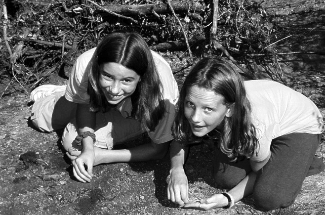 Katie and friend Jamiee look for garnets.