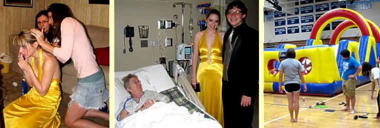 Mom in the hospital; right, after-prom participants enjoy one of the inflatable toys.