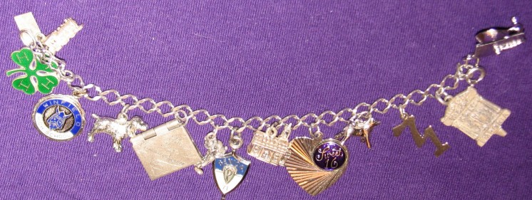 A silver bracelet I received as a young girl is filled with charms that remind me of my childhood. I haven't worn it in years, but whenever I take it out of my jewelry drawer, it always makes me smile.