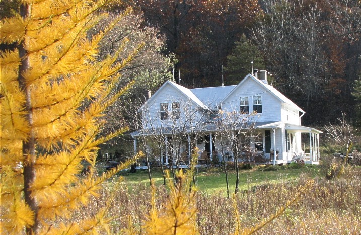 For Jo and Bob, it was pretty much love at first sight - even though their first sight of the house was in a snowstorm. The house has conventional plumbing, but the water supply is a spring just to the north. Several hundred feet to the west past the meadow is a small trout stream. Sitting on either porch, a person may see a pheasant come out of the nearby tall grass and cross the lawn. At night, the sky between each twinkling star is black. Not the absence-of-day black of the city, but the black that somehow seems darker than when you close your eyes under the covers at night. The hazy glow isn't the reflection of lights from a city's smog, but a clearly visible Milky Way. Jo says she never tires of just looking at the sky.
