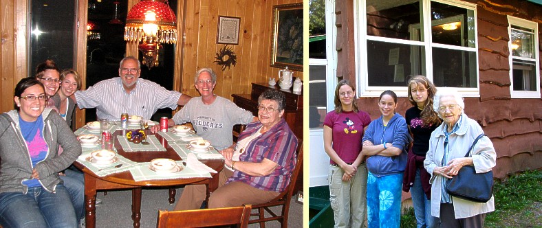 Left: Lacey, Mariya, Katie, Art, Gloria and Claudia in Claudia and Karl's home;