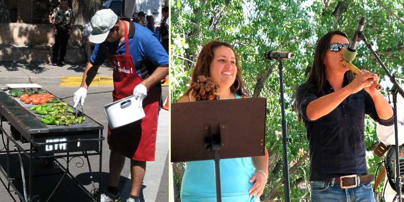 The next morning, we headed to Old Town again, this time to take in the annual Salsa Festival. It's a celebration of the harvest of the red and green chili peppers. Strings of red peppers hung from building entrances and in courtyards. On the perimeters of the central plaza, contestants roasted them and then mixed them with their own special ingredients. For $4, a person could taste them all and then vote for their favorite. But Art and I decided to limit our chili intake to the ones on our chimichangas and sopapillas at La Hacienda, a restaurant on the corner of the plaza.