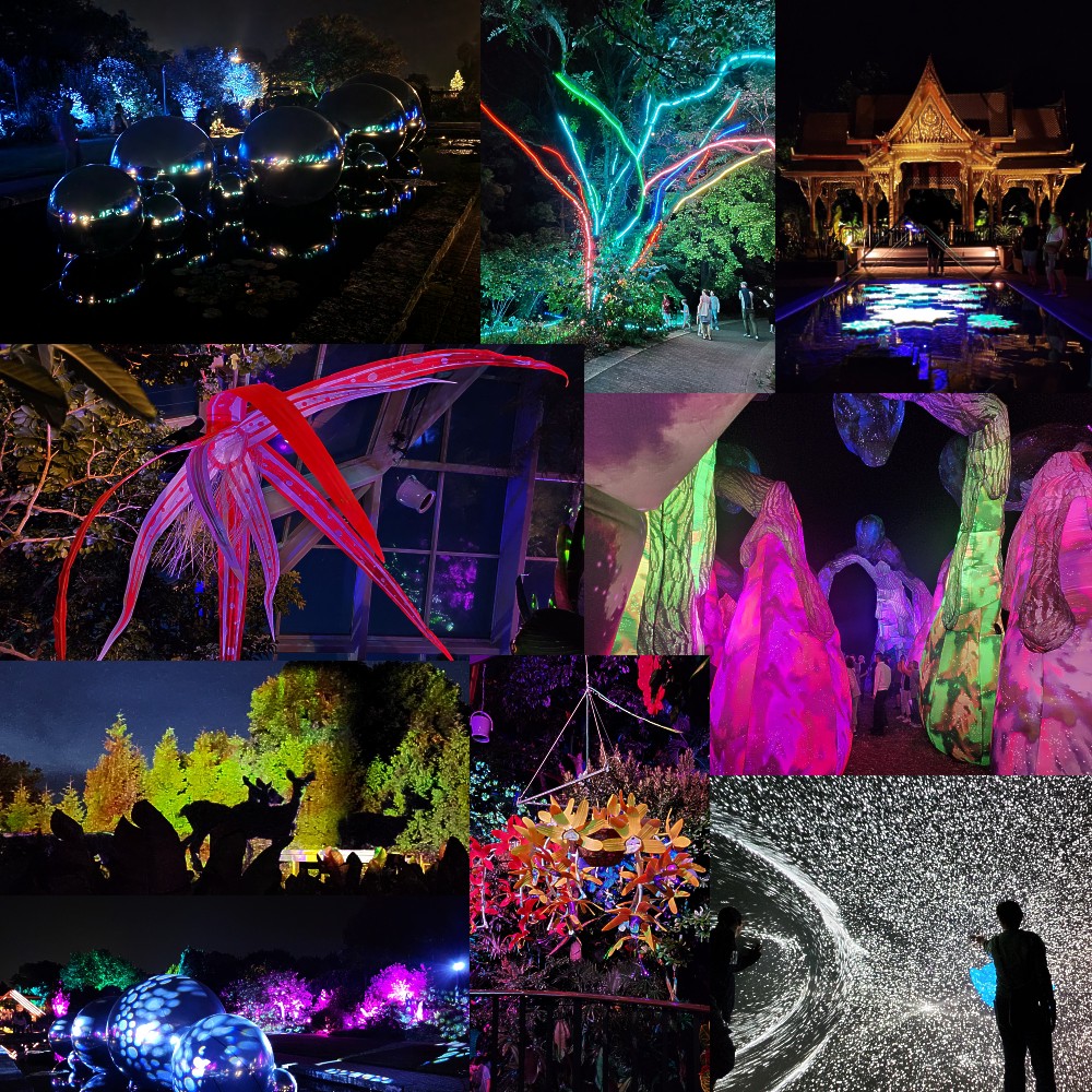 They are waiting to see the 10th anniversary version of "Gleam," a nighttime exhibition "...reflecting a language of love for the natural world" presented by the Olbrich Botanical Gardens in Madison, Wisconsin. Daughter Katie, hubby Art and I saw it in September. Visitors enter in small groups every 15 minutes. The pictures say it all, so why should I say more?