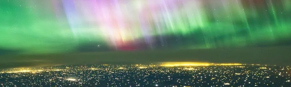 Pilot Matt Melnyk took this picture from his Boeing 787 Dreamliner at 36,000 feet over northeastern Alberta on a recent flight from London to Calgary. Melnyk, "a seasoned aurora chaser," said he sees auroras 90 percent of the time on his flights across Europe. "... It's rare to be flying at the exact time a major solar storm is happening, so I consider myself extremely lucky to be able to witness this event."