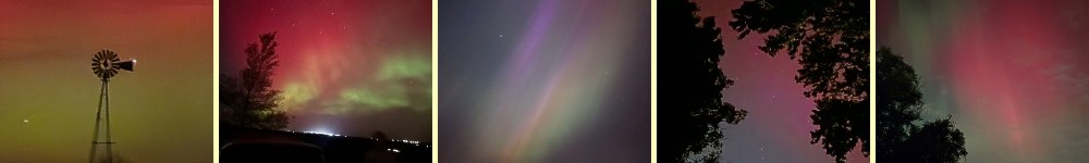 Northern Lights photos from (l-r): neighbor Jim, friend Pat, Wales by me, Kansas by me, and daughter Katie