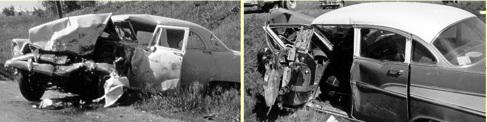 of May 16, 1964. Dave, 16, was driving, when a car coming toward us crossed the center line. The left half of each vehicle met