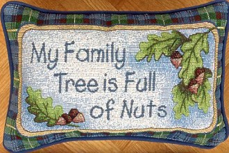 there are tons of items advertised on the web that have the pillow's "My Family Tree is full of Nuts" phrase speaks to how