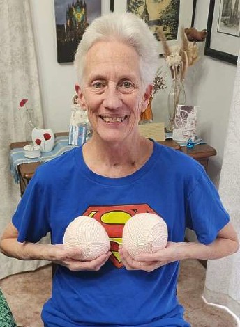 Gloria and her "Knitted Knockers"