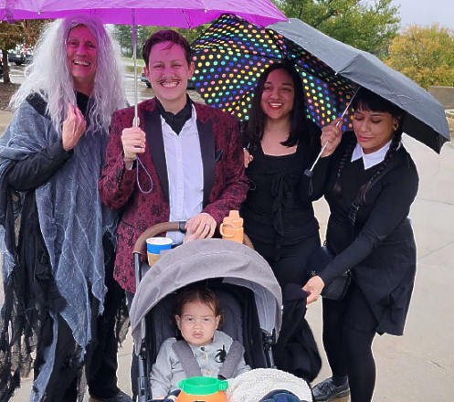 The theme was "The Addams Family." Miriam’s cousin Anabell joined them and wig of long gray hair was purchased for Gloria so