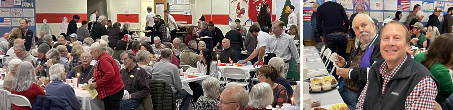 Left: A happy bunch at the Olsburg supper - and not just Swedes. Right: Dave, on the right, sits next to some oddball.